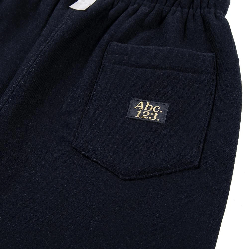 Heavyweight sweat-shorts in the signature proprietary custom milled rib and heavyweight cross knit fleece fabrication. Features include the signature paracord drawstring, Abc. Ecru pull-tab, ecru chainstitch embroidered Abc. and 123. on back legs, 2 tonal 100 denier damask woven Abc. 123. patch label and flag label with metallic gold thread, and “Pulse Pocket™” indicated with an embroidered Abc. pulse logo.