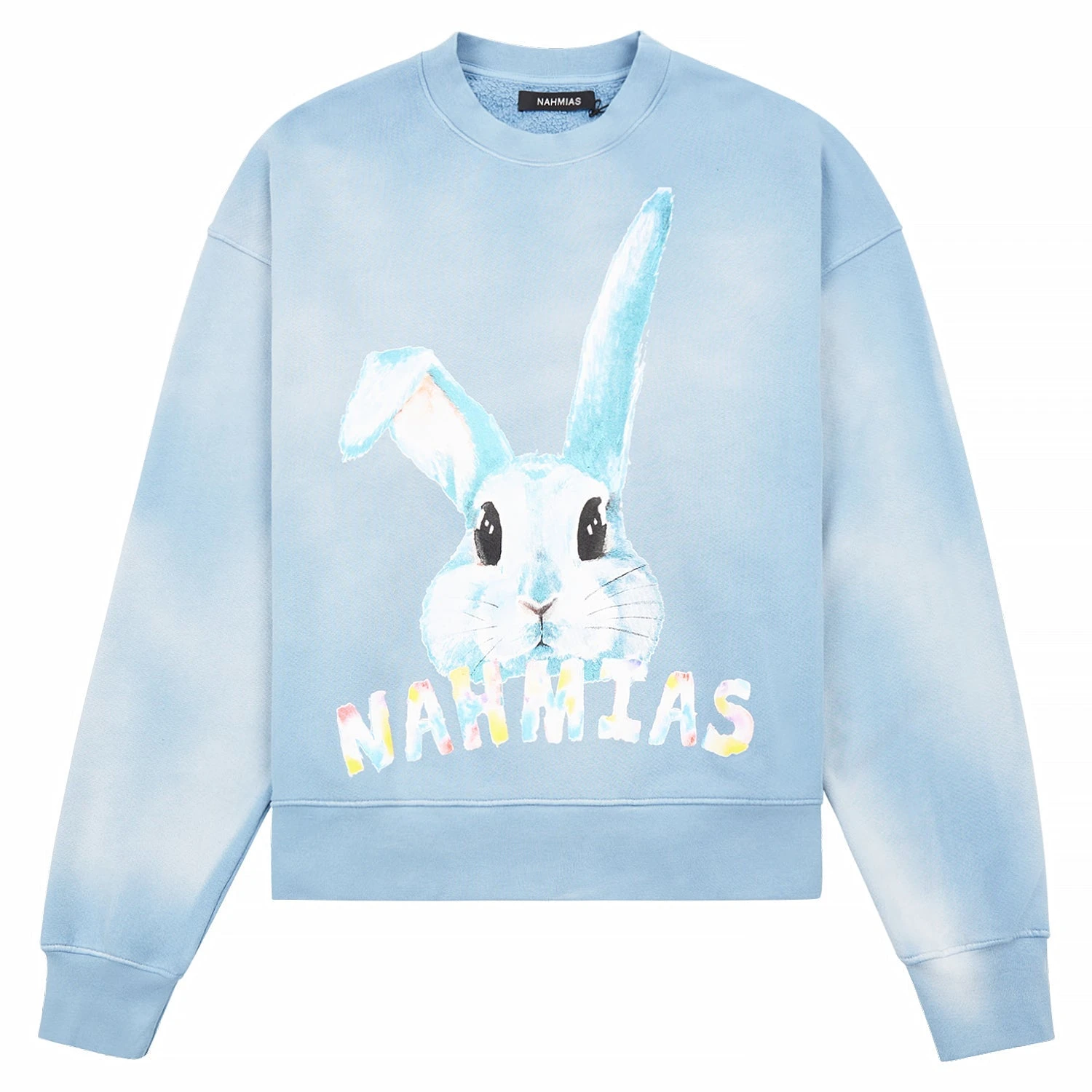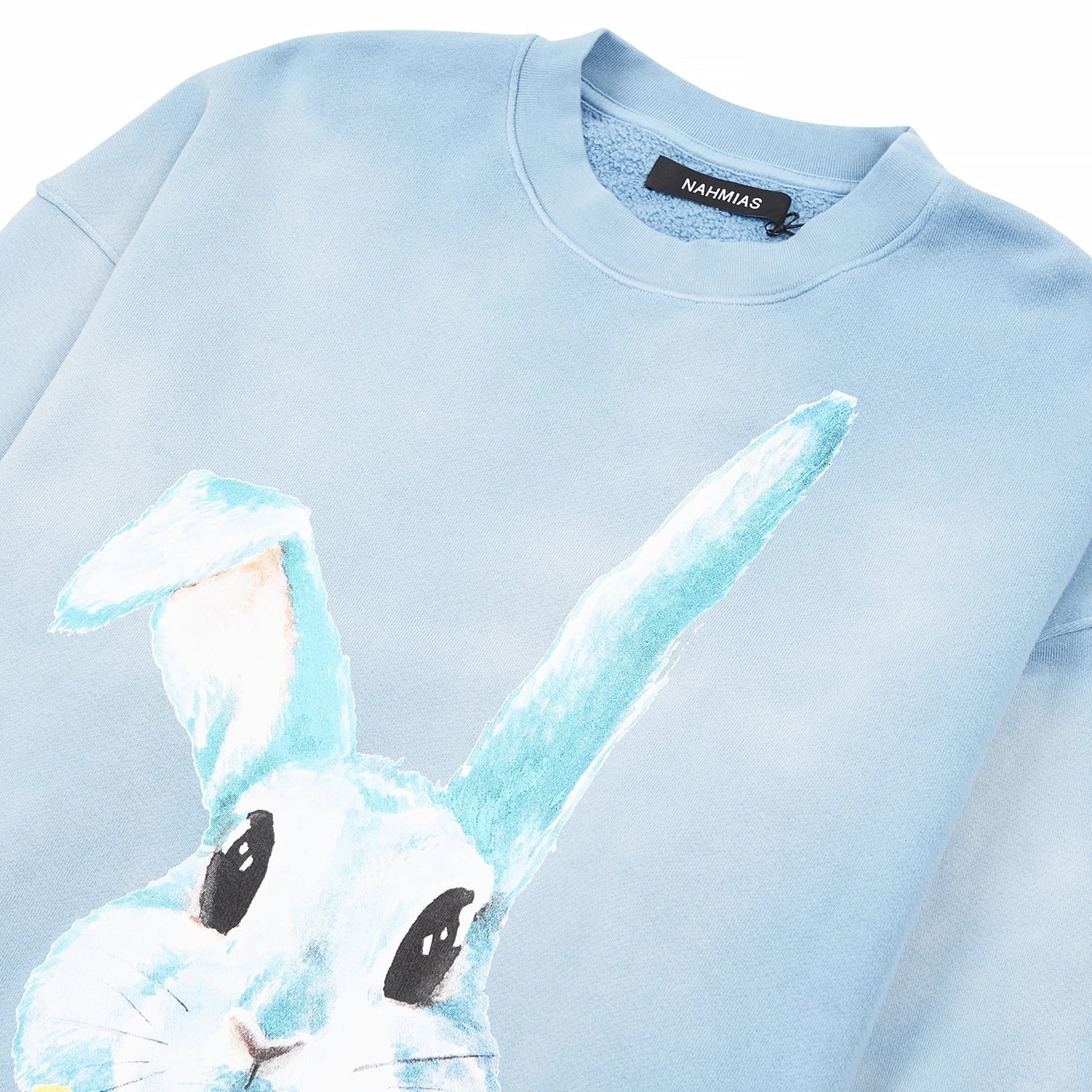 FADED DUSTY BLUE FLEECE CREWNECK WITH BUNNY MOTIF