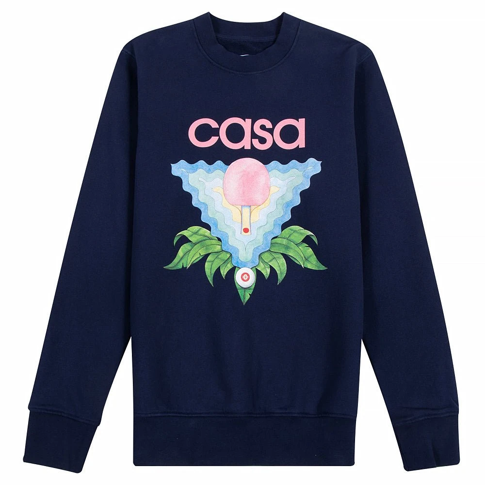 Add a bold retro touch to your laidback looks with this off-white crewneck sweater from Casablanca. Cut from soft cotton, it arrives with a relaxed, drop shoulder silhouette and features an abstract, pastel-hued graphic at the front, which draws inspiration from various bold aesthetics of the ‘80s – namely Japanese sporting culture and the lively creations of the Memphis Design movement in Italy.