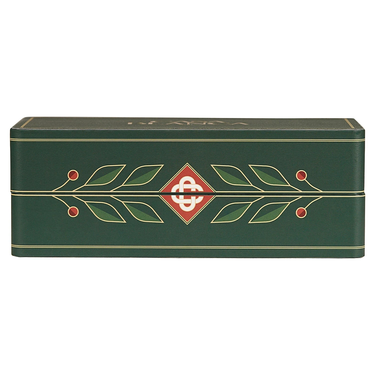 - Branch accent at hinges