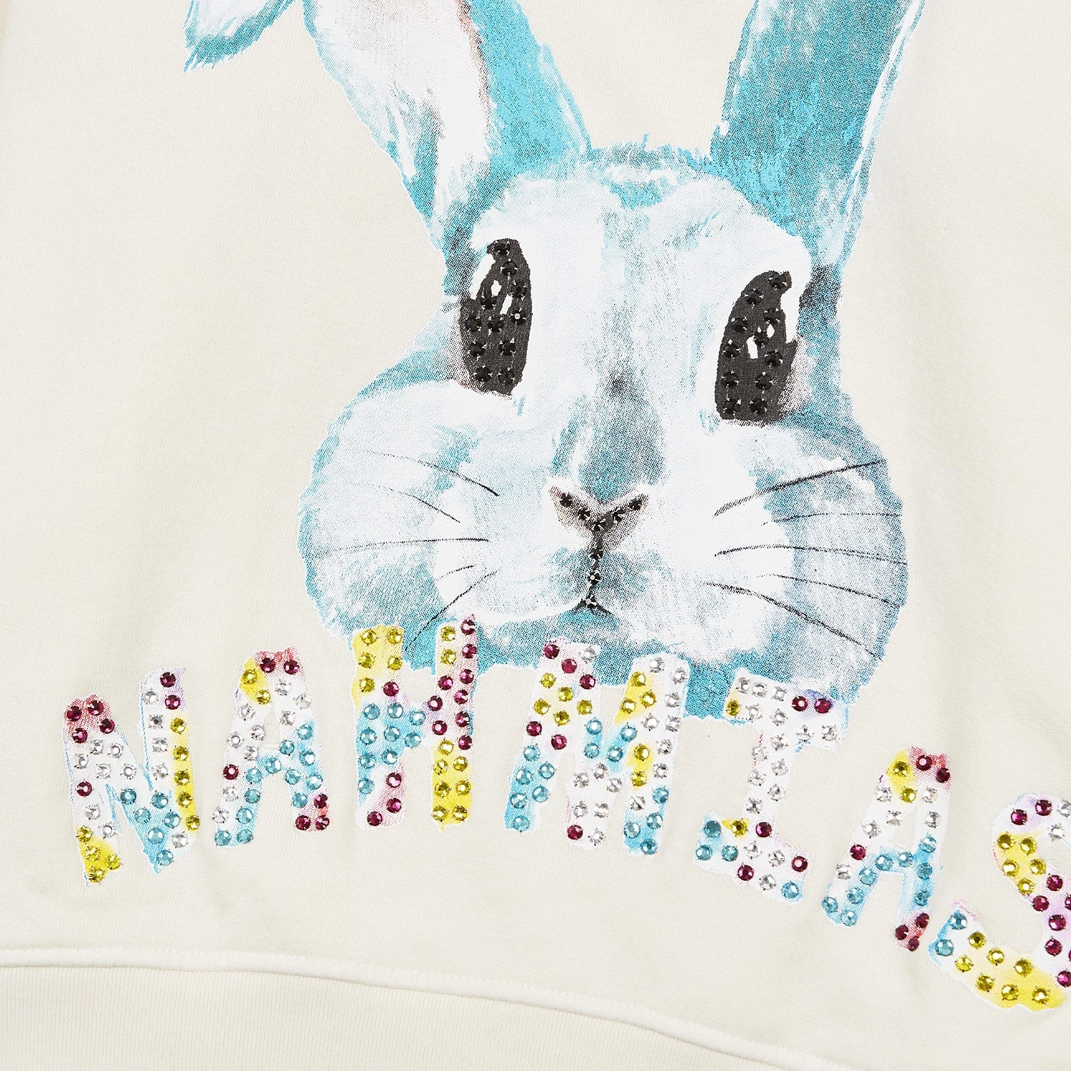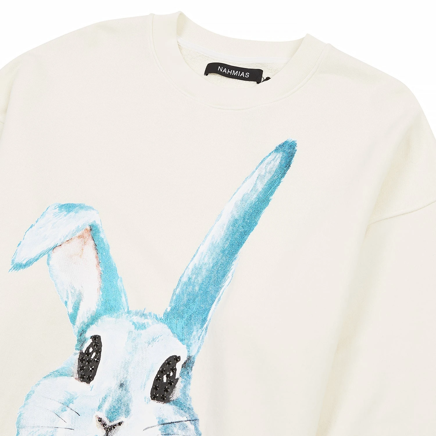 DUSTY VINTAGE WHITE FLEECE CREWNECK WITH BUNNY MOTIF AND CRYSTALS