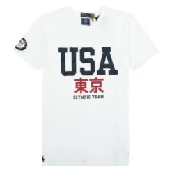 - Crewneck. Short sleeves. Patch featuring the official logo of the U.S. Olympic Team at the right sleeve.