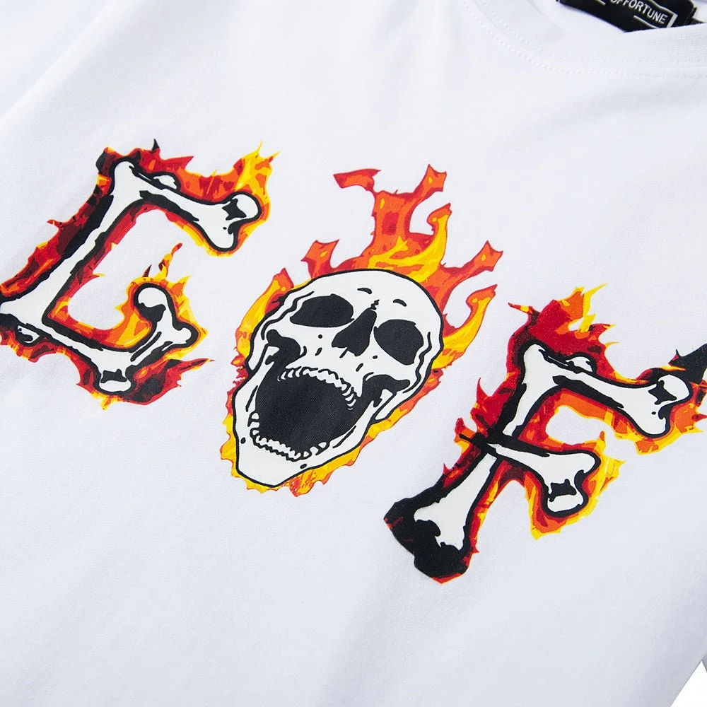 Flaming Skull t-shirt is made from a soft blended cotton fabric. The glowing in the dark skull design will help you stand out from the crowd, and the high-quality ringspun cotton will provide all-day comfort making this t-shirt the perfect addition to your clothing collection.