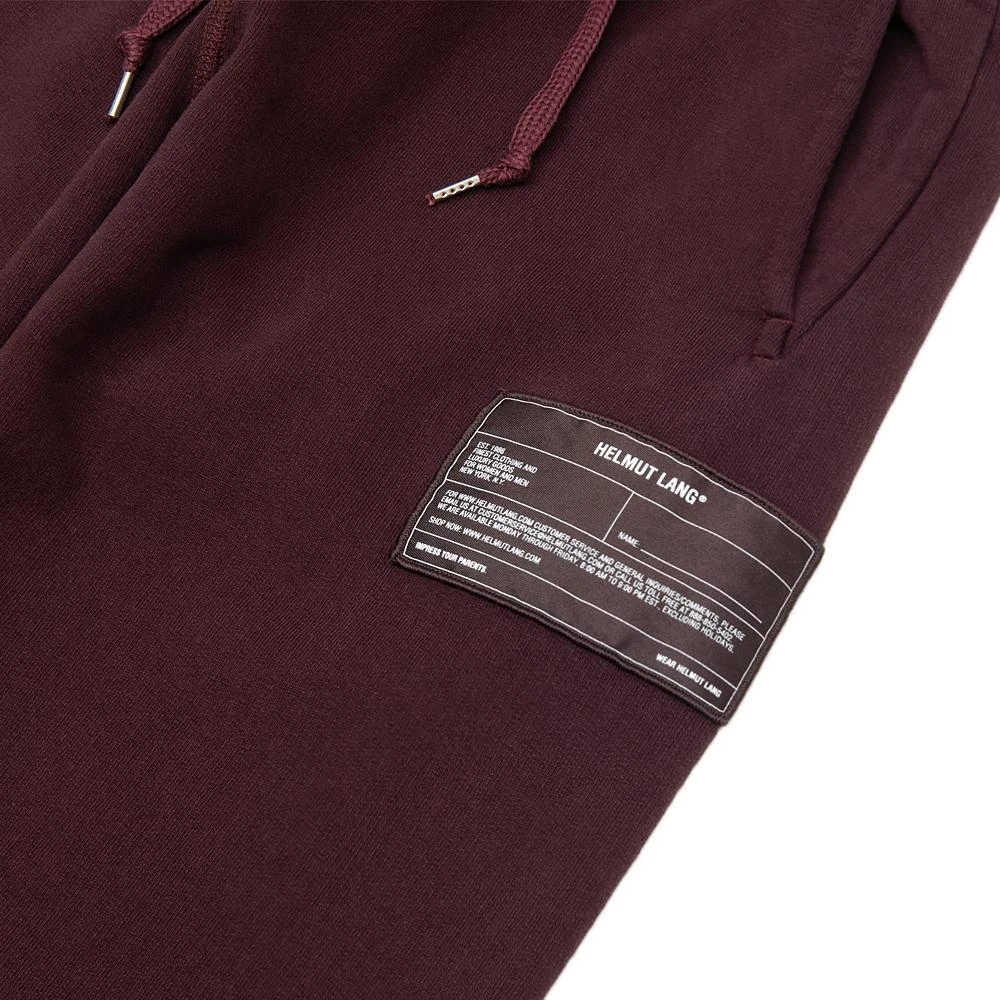 The Helmut Lang Patch Sweatpant is a slim yet relaxed sweatpant with a drawstring waist and garment tag on the leg.