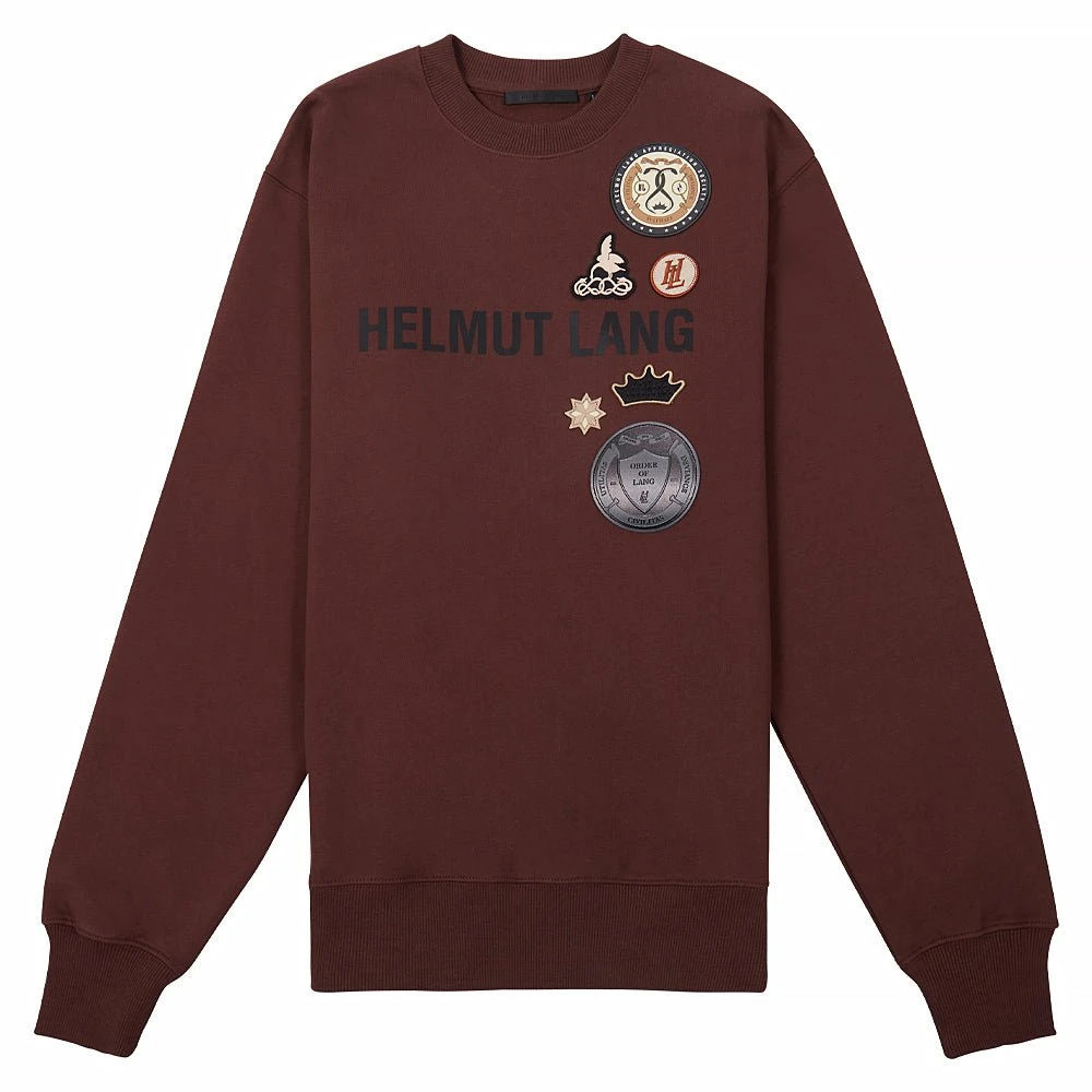 The Helmut Lang Crew is a terry cotton sweatshirt with a crew neckline and an HL Societas logo and logo patches at the front.