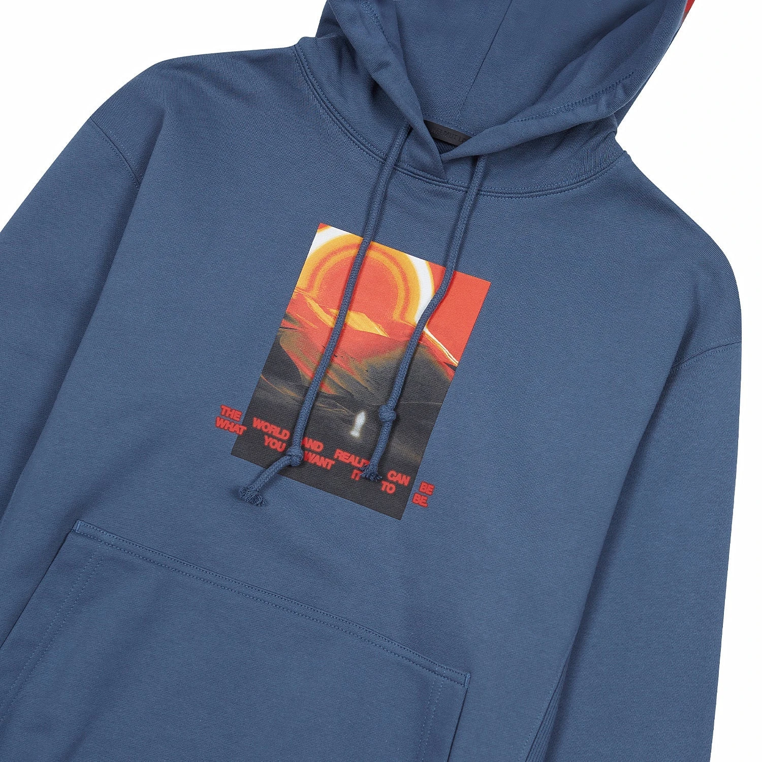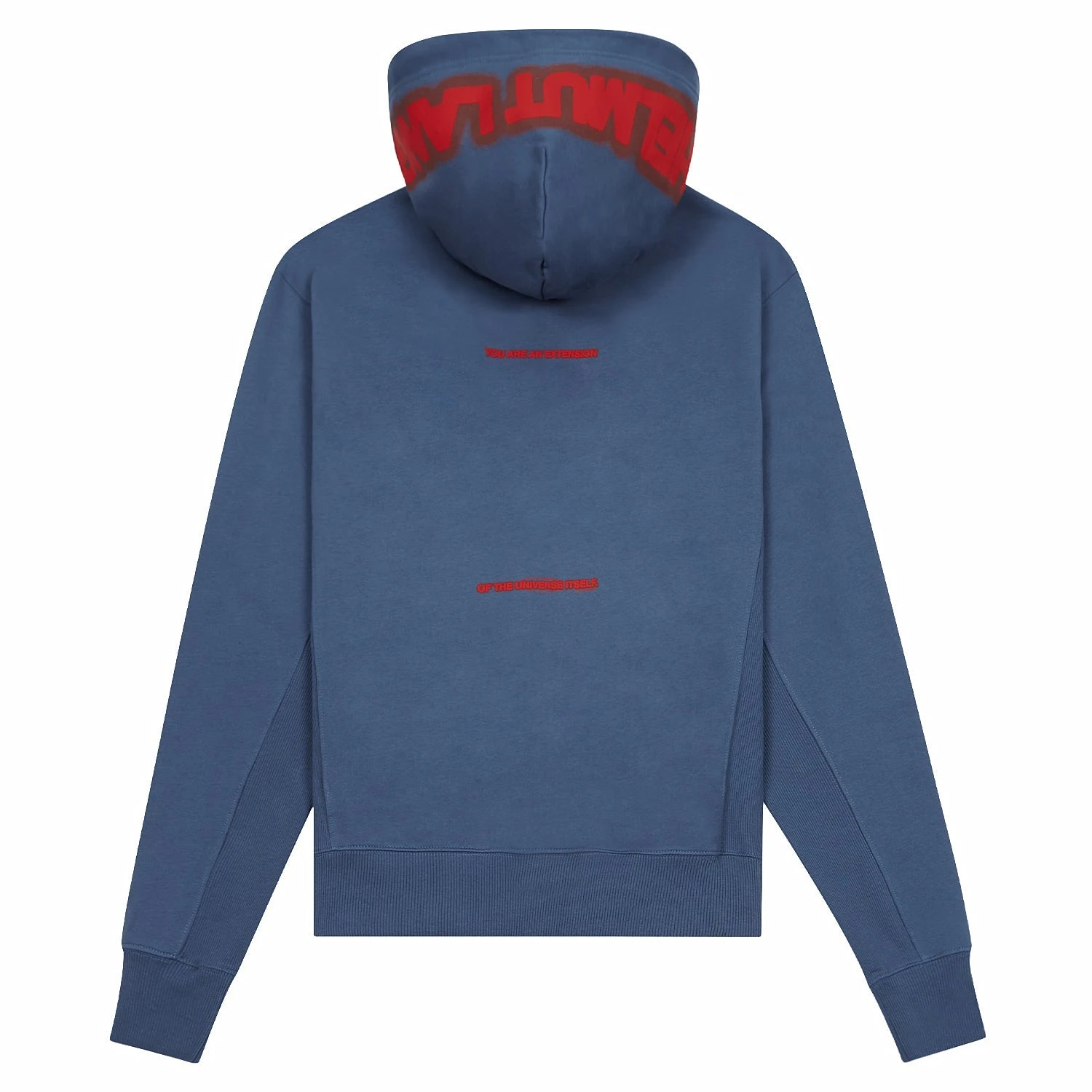 The Helmut Lang Logo Hoodie is a relaxed style in a compact French terry cloth with an HL outer space logo at the back and the front, drawstring hood, kangaroo pocket, and rib knit details throughout.