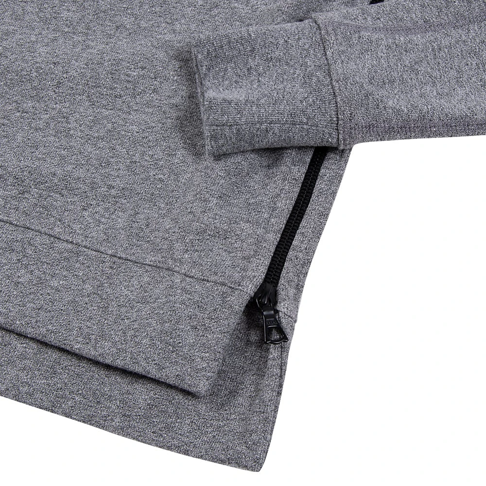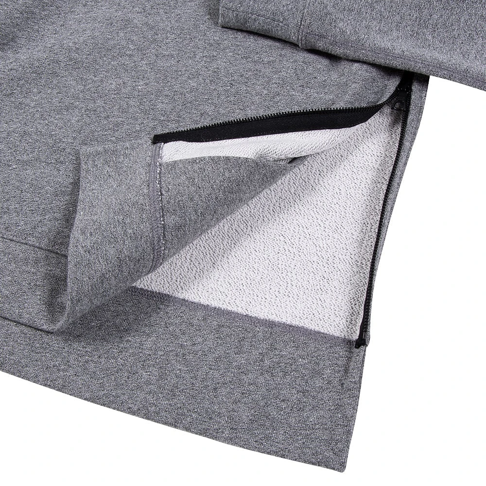 Slim fit hoodie with vertical Riri side zippers that conceal a hidden kangaroo pocket. Rib knit cuffs. This hoodie features custom knit French terry with flatlock stitch details. Made in Los Angeles.