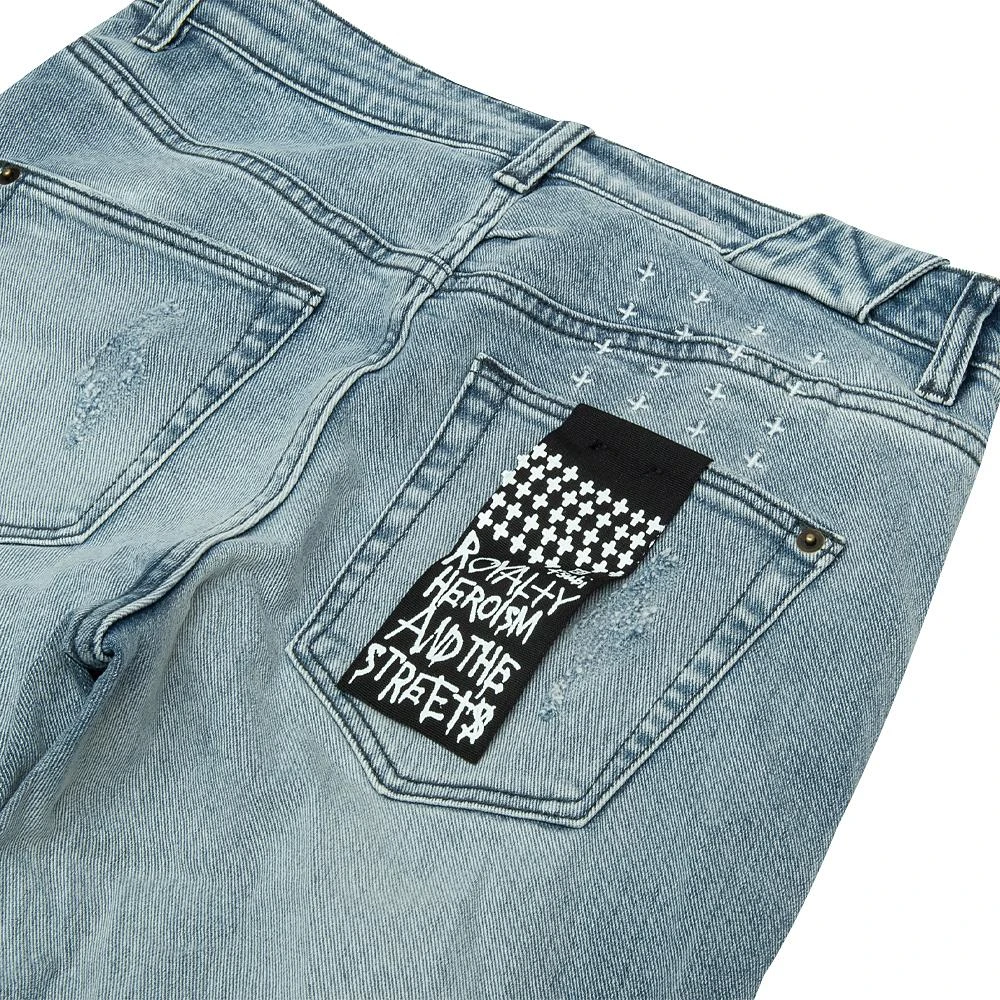 The Chitch jean is a contemporary style jean in a tapered leg, constructed in premium comfort stretch heavyweight denim. The Chitch is designed in a relaxed, longer rise, and features branded hardware, five pockets, trashing at the thigh and knee, and signature Ksubi embroidery at the reverse.