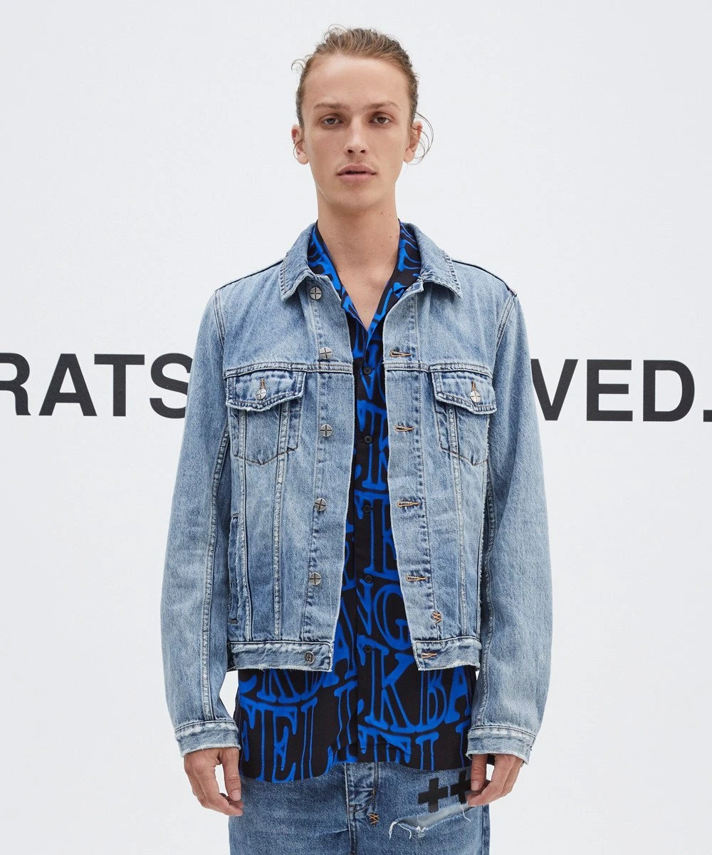 - The Classic Jacket is a classic trucker jacket with a signature Ksubi cross dollar print at the reverse. This design is constructed in a heavy weight denim and features subtle distressing throughout, vintage highlights, patch pockets at the chest, button through front, iconic t-box and cross stitching, made from a premium European denim and comes in a washed blue colourway.
