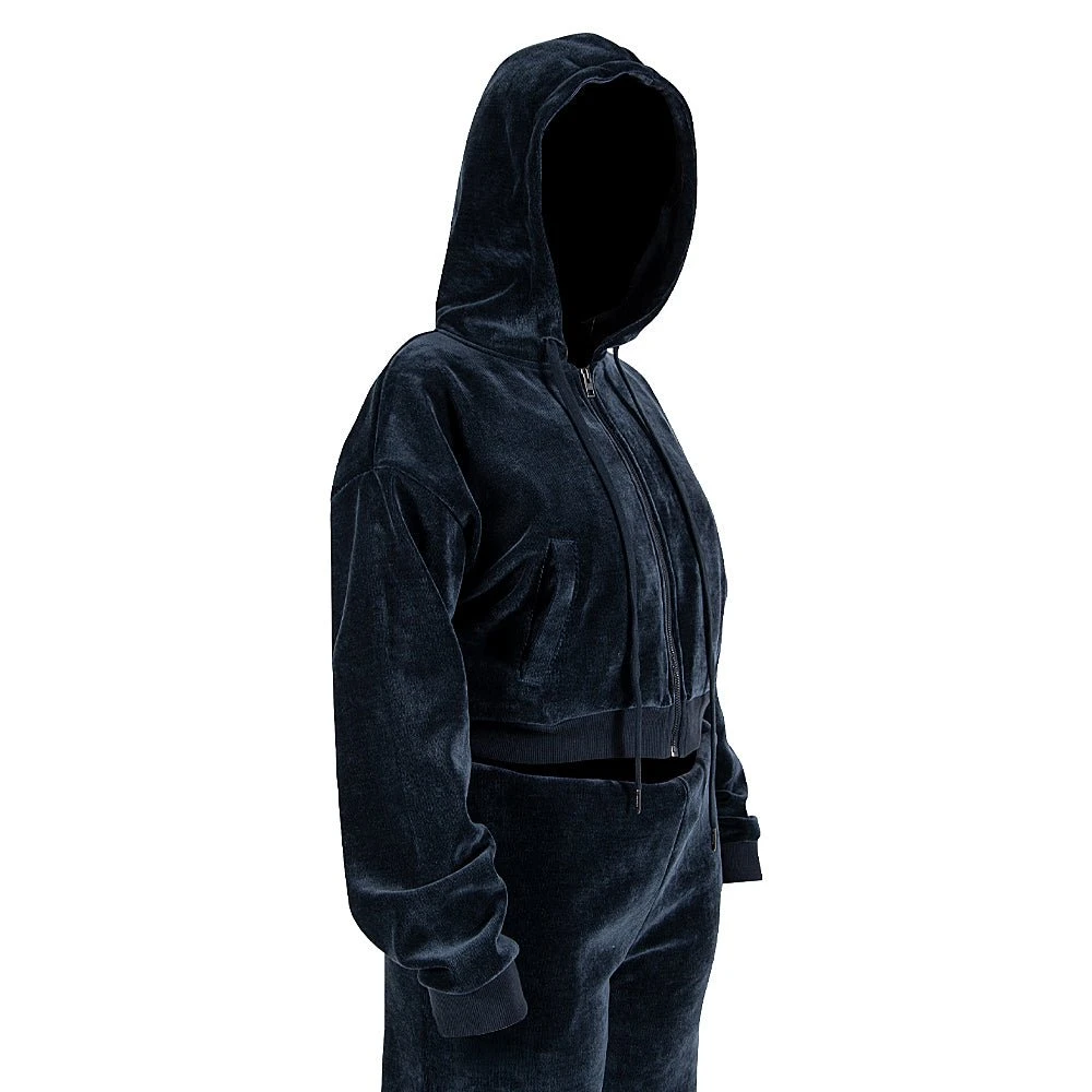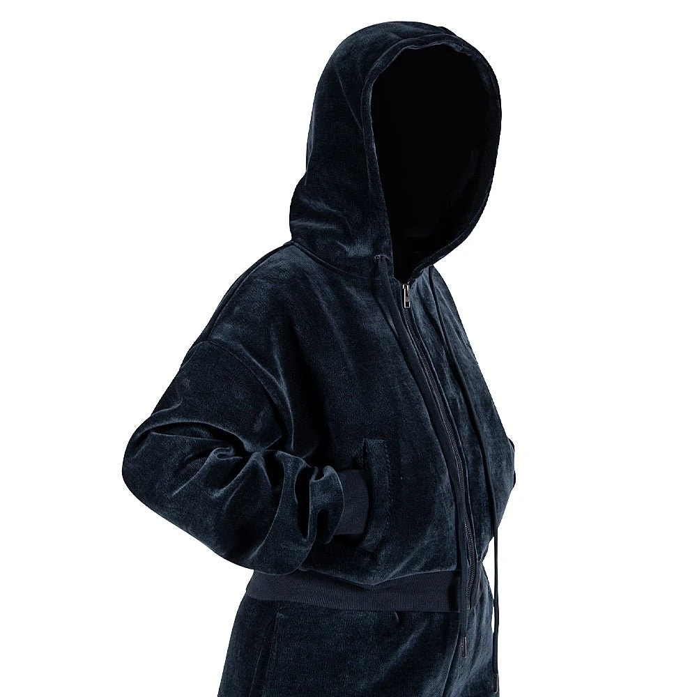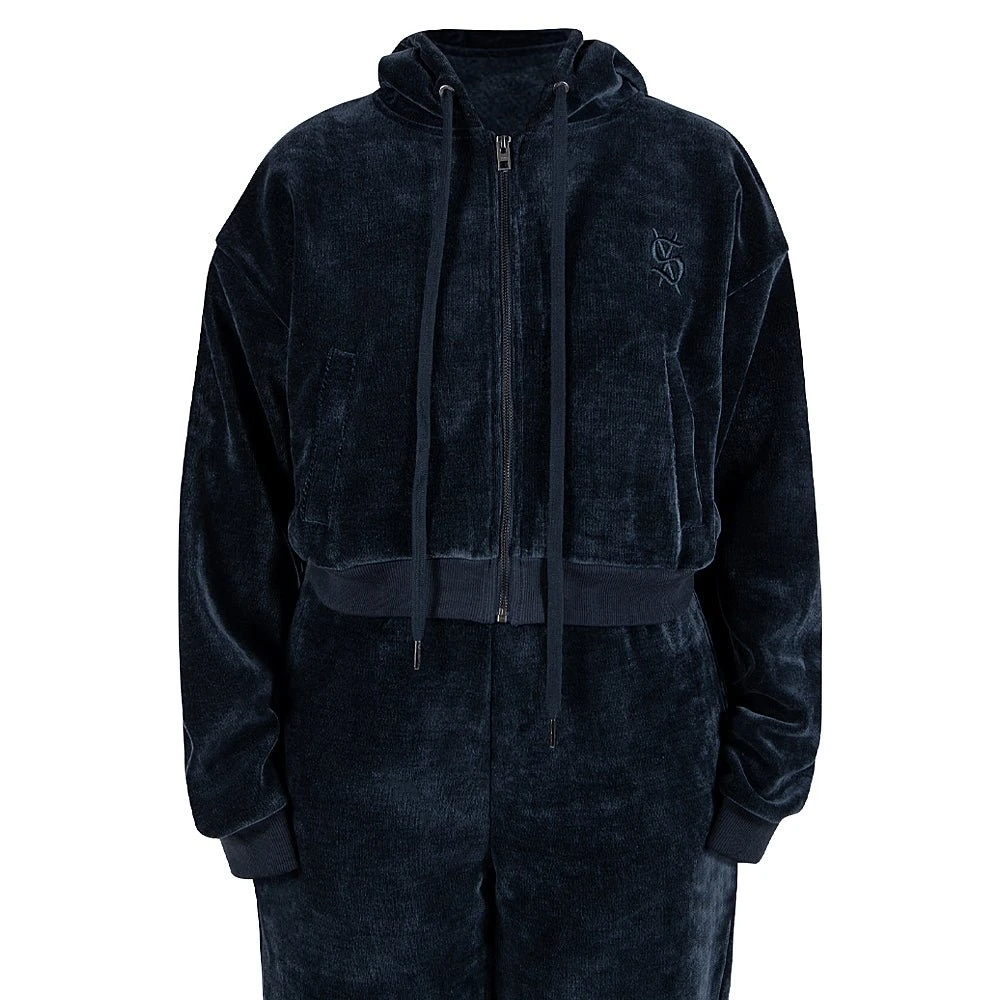 The Velour Zip Up Hoodie Midnight comes with front zip closure, cropped length, drawstring through the hood and front welt pockets. It is a relaxed fit hoodie that features art embroidery and Ksubi t-box embroidery. It is made from premium velour with a plush hand feel. For the complete look, pair it with the ‘Velour Icon Trak Midnight.’