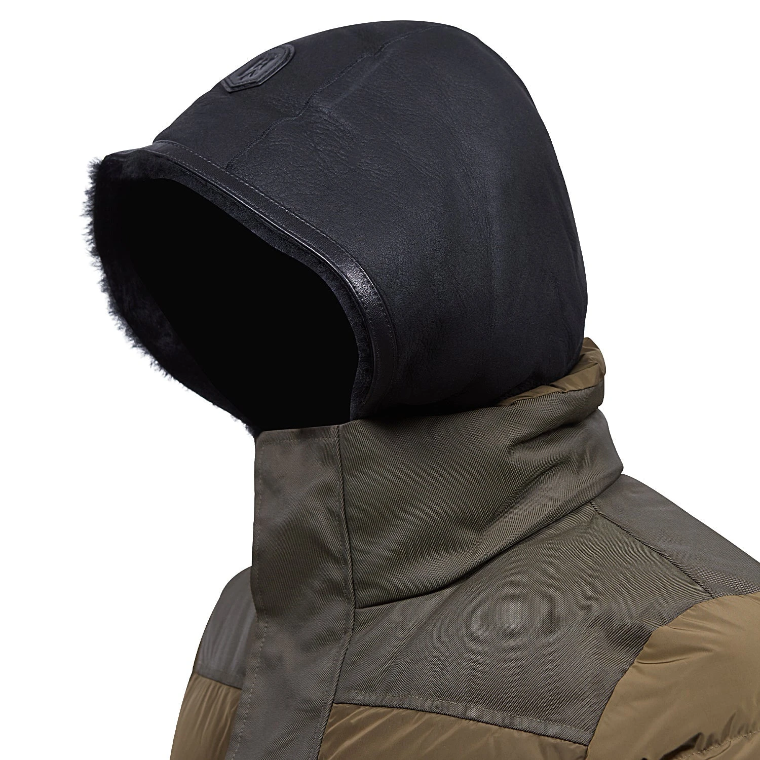 RILEY is a classic down jacket for men with a removable shearling bib and a hoodie for versatile protection. Featuring shirttail detailing at the back and contrasting yoke, placket and pocket flaps, Riley is water resistant, repellent, windproof, and breathable. A foundational, functional staple piece engineered for superior warmth.
