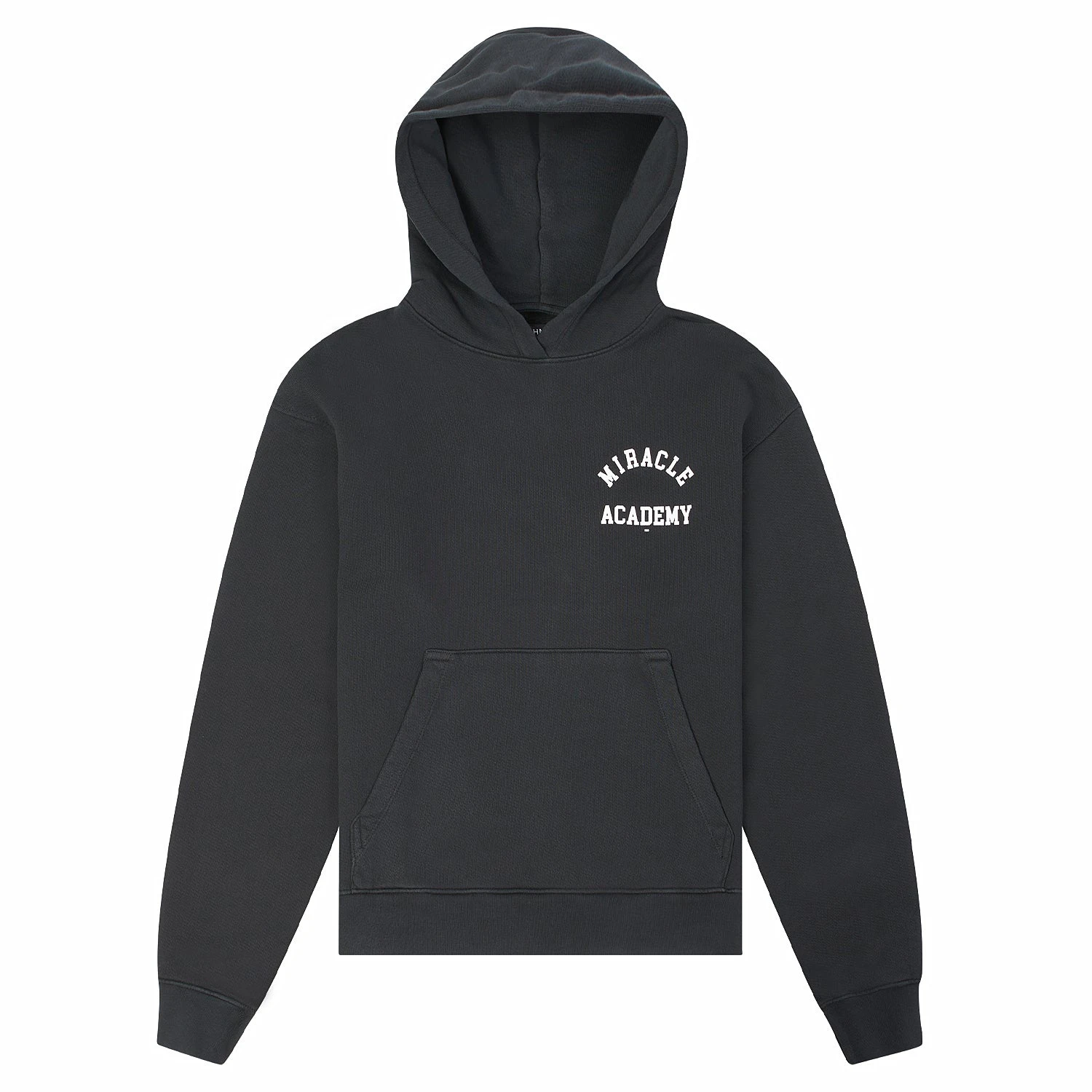 FADED BLACK FLEECE HOODIE WITH MIRACLE ACADEMY MOTIF