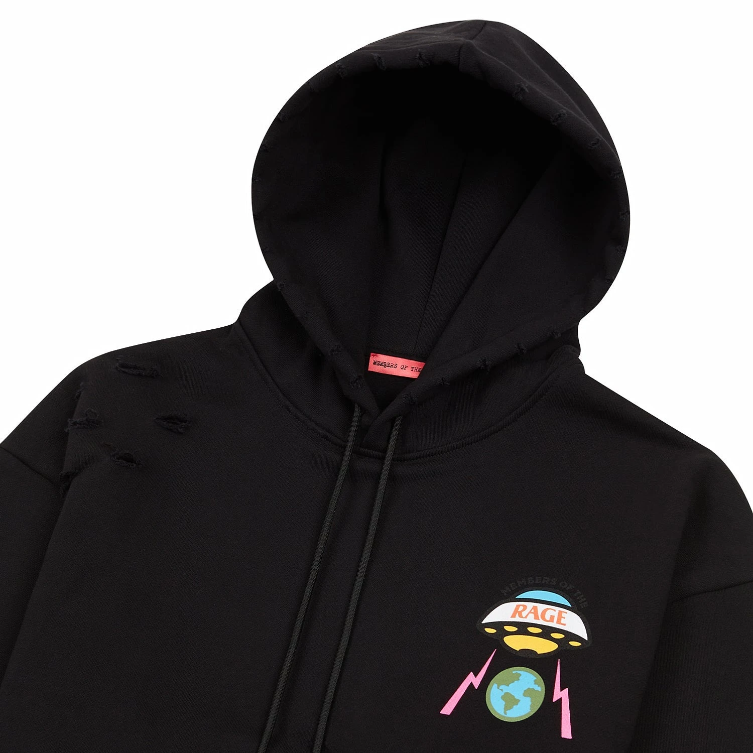 Exploring traditional streetwear archetypes, Members of the Rage, Kid Cudi’s latest venture, offers up out of this world graphic pieces like this UFO distressed hoodie. Showcasing the brand’s love of 90s nostalgia, it offers a loose, baggy fit and features distressed detailing throughout, giving it a pre-loved, worn-in feel. A seasonal, colourful graphic on the chest finishes it off.