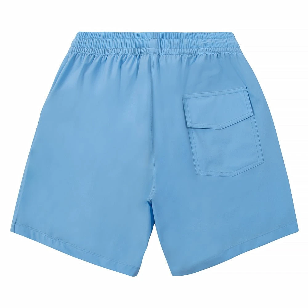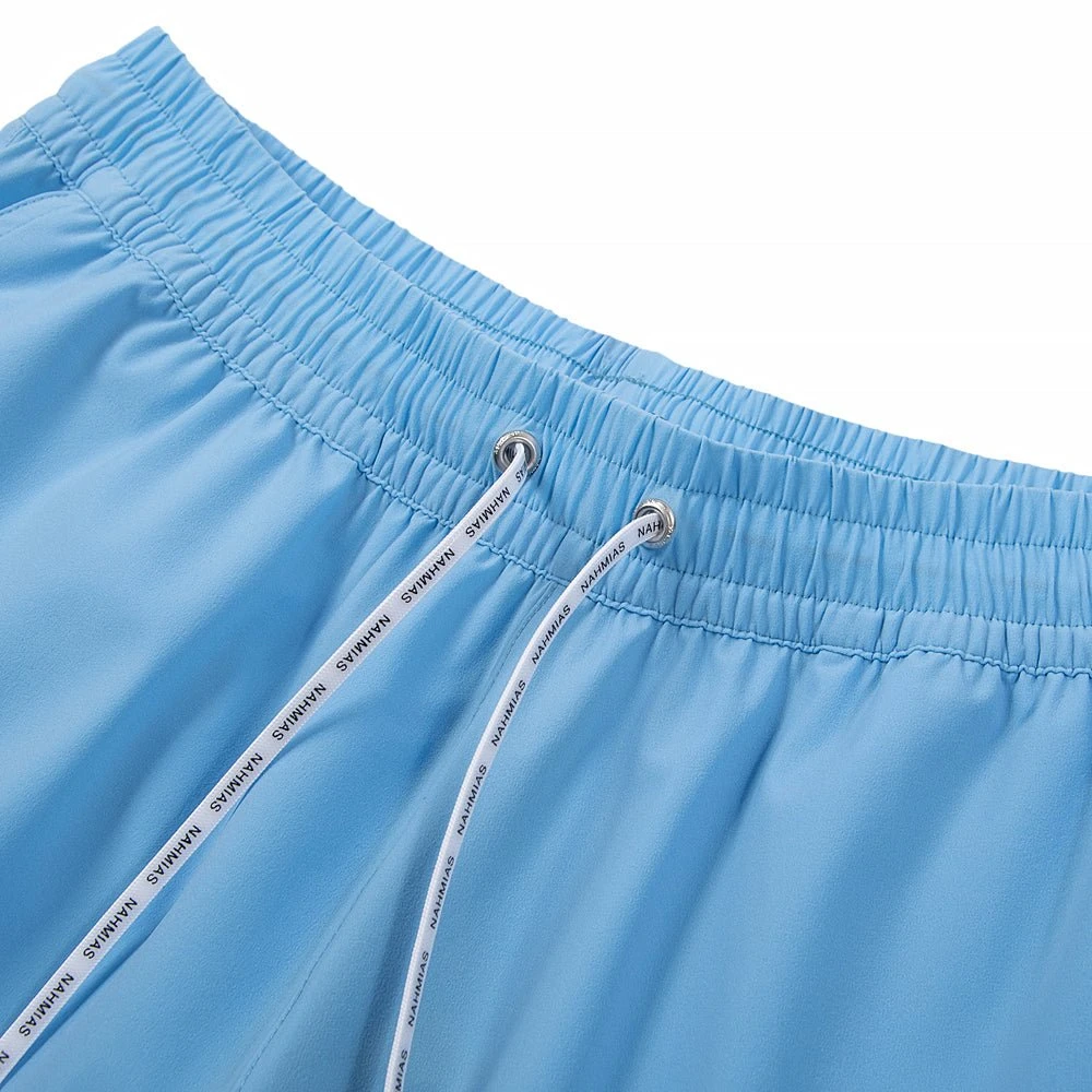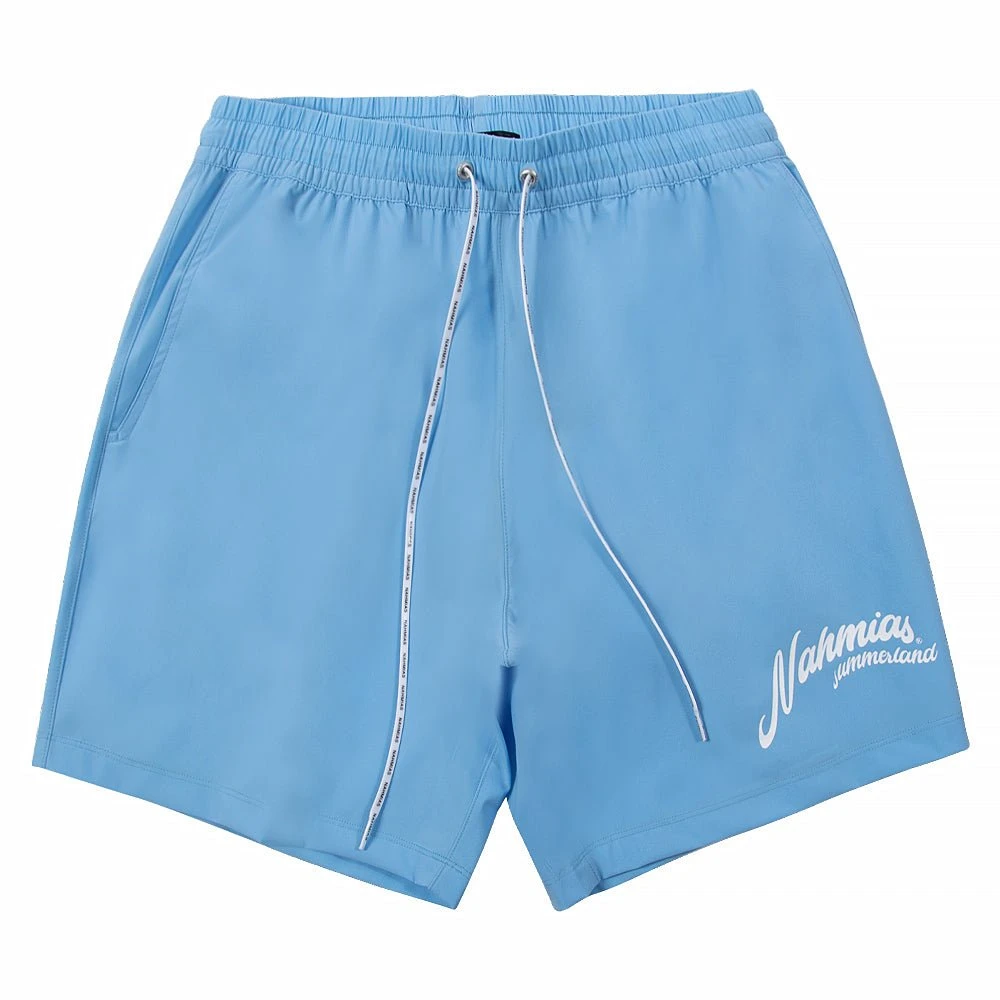 LIGHT BLUE NYLON SWIM TRUNKS WITH NAHMIAS SUMMERLAND MOTIF