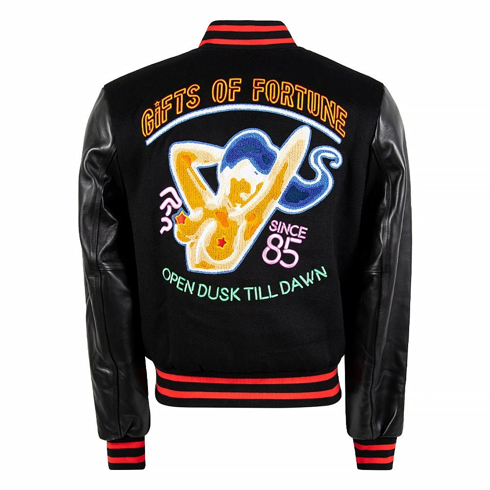 Heavyweight letterman style jacket constructed from 100% virgin leather and a premium thick wool fabric. Neon Girl leather varsity jacket has allover chenille embroidery. A high-quality varsity that will provide you ultimate comfort while giving you a cool stylish look.