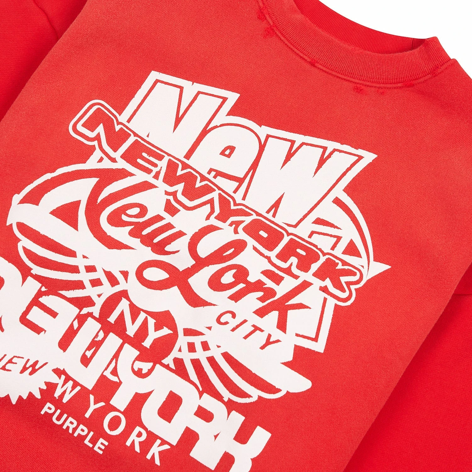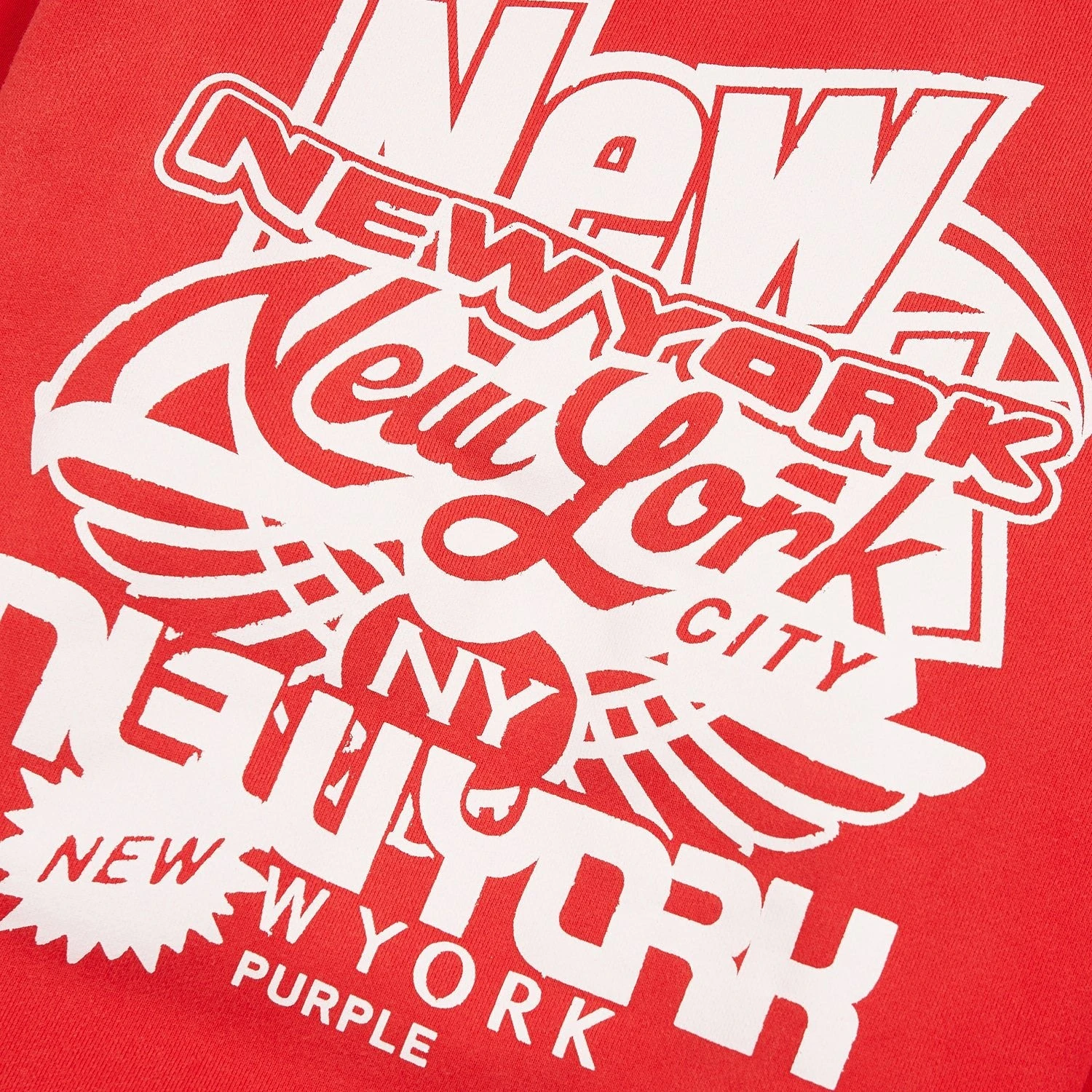 This classic blue fleece features a brushed-back surface, which provides a smooth, soft feel perfect for comfort. The heavyweight style is defined by contrast “New York” typeface in front, a crewneck and ribbing at the cuffs and hem.