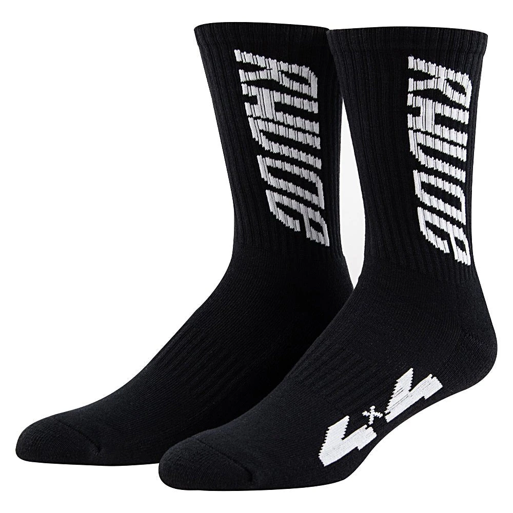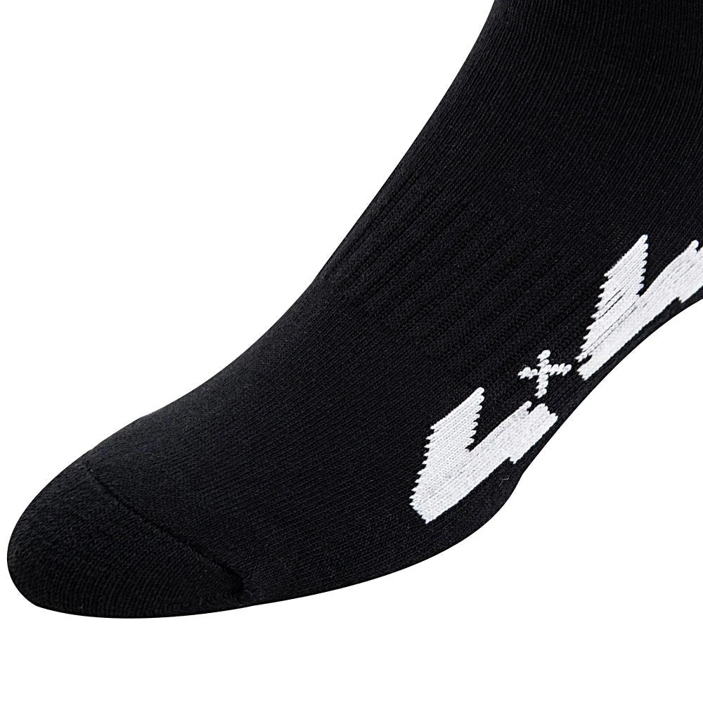 Calf-high knit stretch cotton-blend socks in black. Jacquard logo in white at rib knit cuffs.