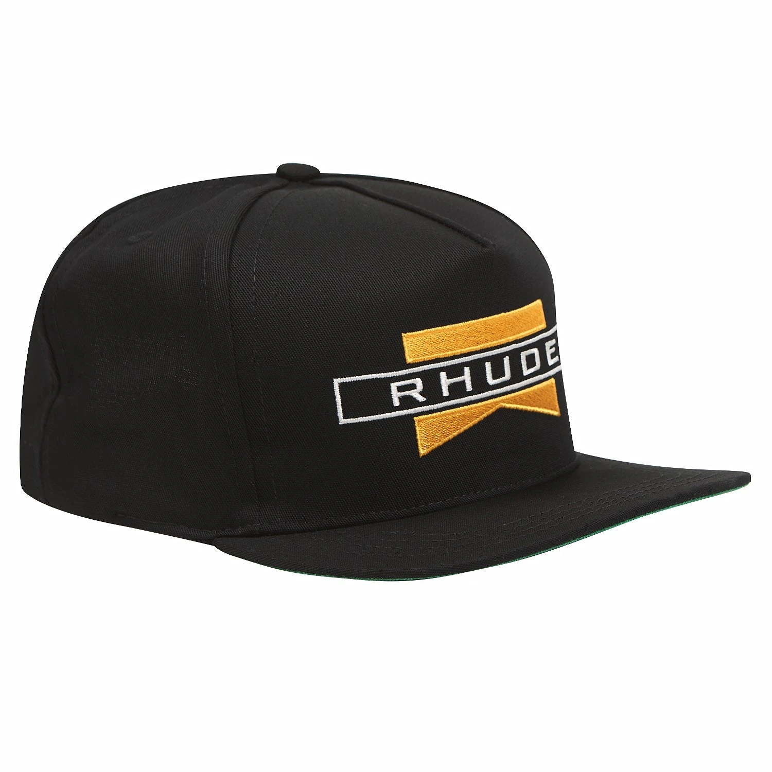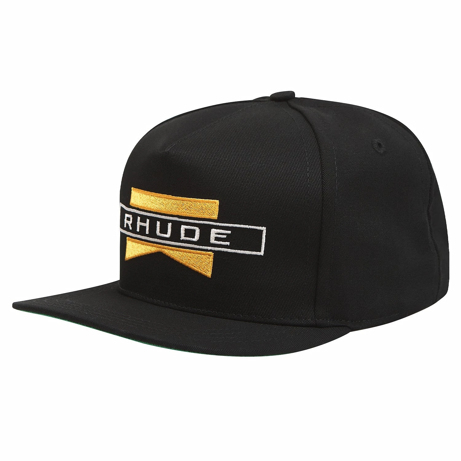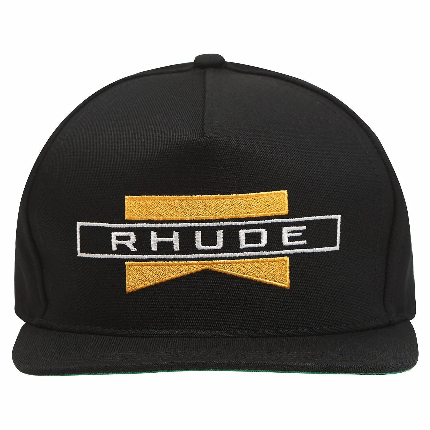 The Rhude Chevron Hat sports a five-panel style for a modern profile. With its logo and chevron embroidery front and center, it defines standout appeal. Stitched eyelets enhance breathability, while the adjustable strap ensures a perfect fit.
