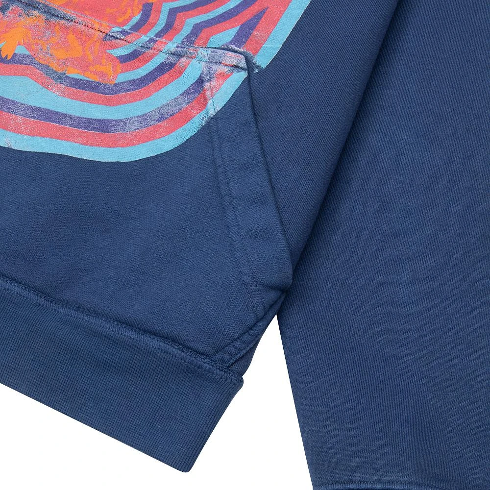 Premium washed cotton crewneck with distressed graphic print on front and back.
