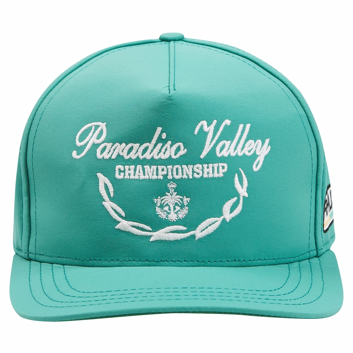 Snapback embroidered with logo and graphic on the Front and Back with snap closure. Dimensions: one size