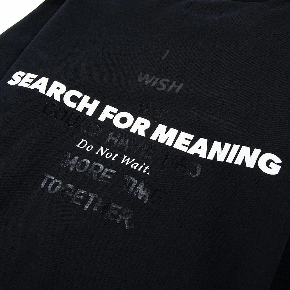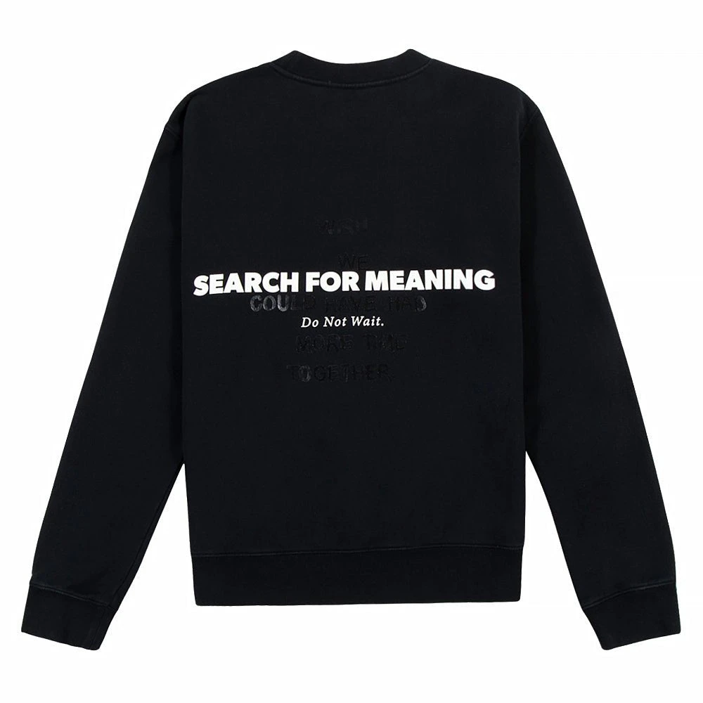 The RtA Charles Long Sleeve Sweatshirt is a classic fit crewneck sweatshirt featuring “Black Search For Meaning” graphic motif on back and velcro RtA logo patch on front.