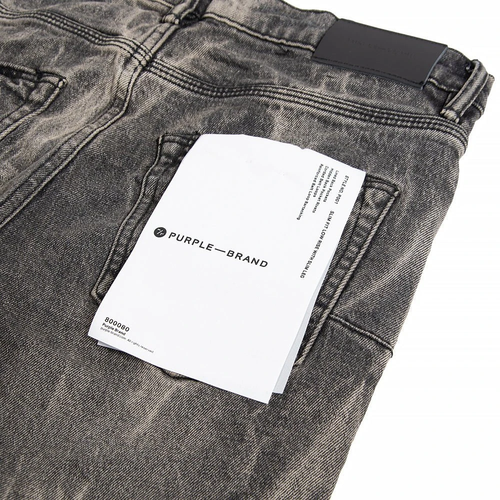 Crafted from premium stretch denim, this vintage-inspired low rise skinny is designed with black washed detailing and subtle hand-applied paint splatter, giving each piece a custom look. Featuring five pocket styling, grosgrain belt loops, bartack stitching, chambray lining for a more comfortable fit, a custom Purple cowhide leather patch and signature hang tag branding.